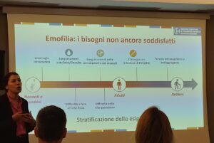 A seguire, la Dott.ssa Simona Maria Siboni ha illustrato in modo chiaro e preciso come riconoscere e gestire un episodio di sanguinamento acuto, fornendo indicazioni utili su quando intervenire e come utilizzare correttamente i diversi concentrati di fattore VIII oggi disponibili.
